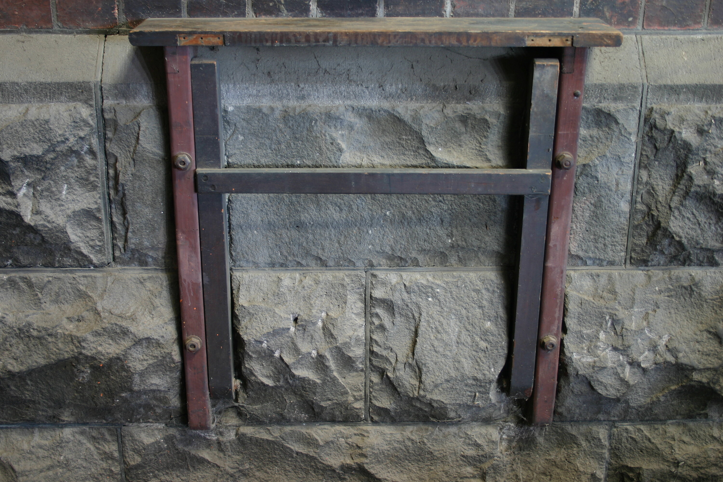 Fixed wooden frame for a log book desk. Located adjacent to the Nos 7 & 8 pumping wells in the North Engine Room.