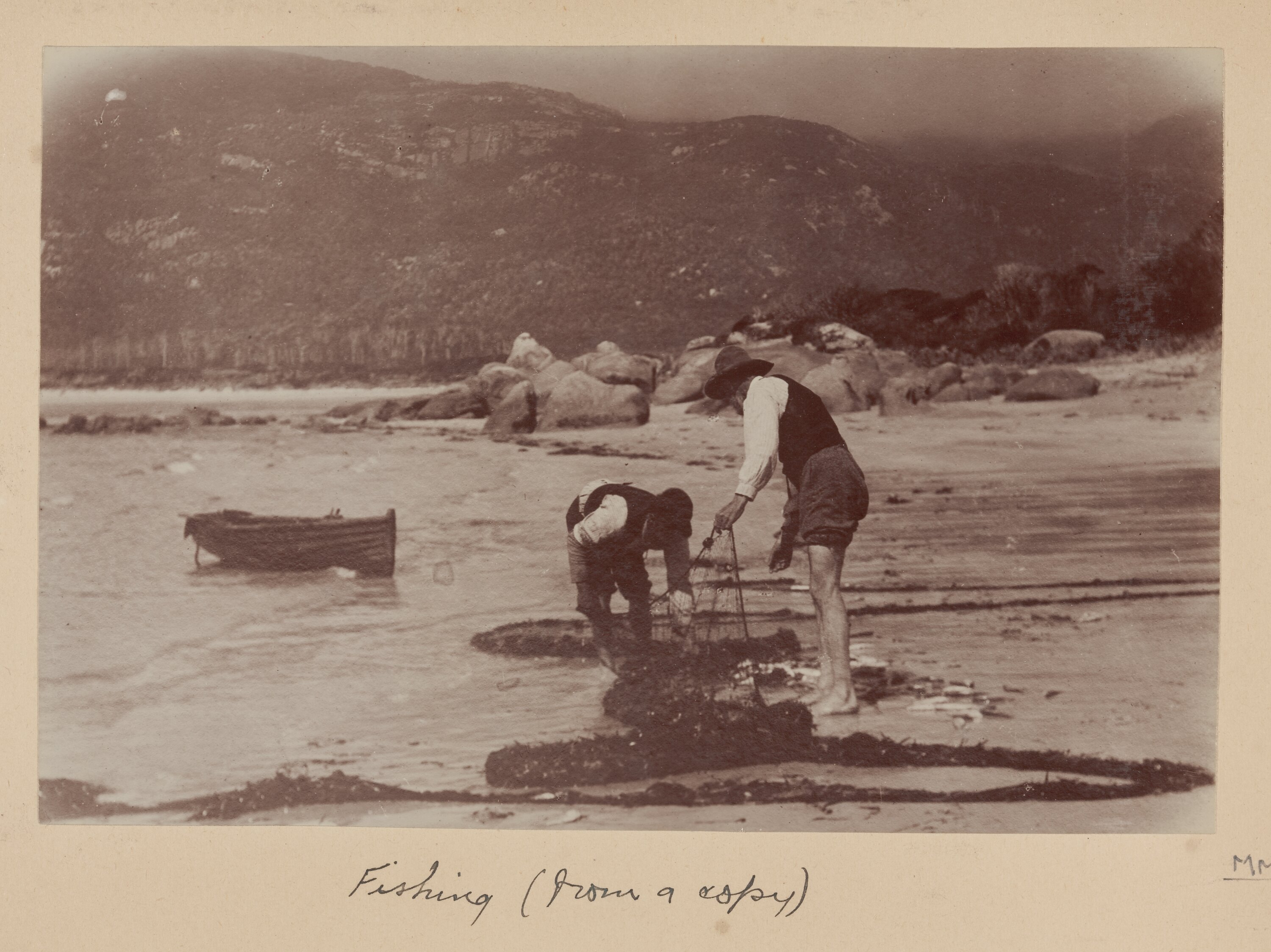 Caption below the photograph handwritten in black ink on backing board: "Fishing (from a copy)"