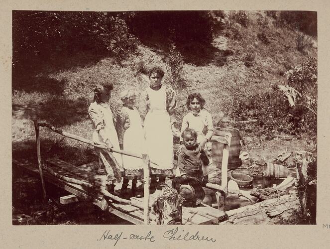 Caption below the photograph handwritten in black ink on backing board: " Half-caste Children".