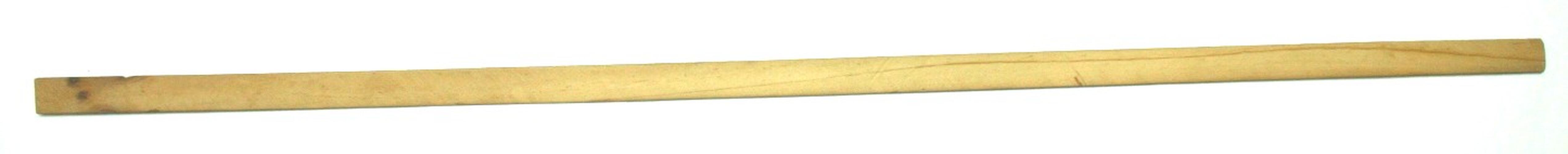 Thin, flat, light brown wooden stick. It is untreated and has a rough surface.