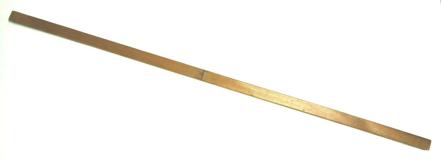 Long, narrow, rectangular length of wood featuring a small hole at either end.