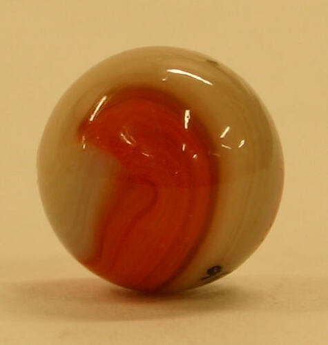 This orange and cream glass marble was excavated at the Commonwealth Block site between 1988 and 2003.