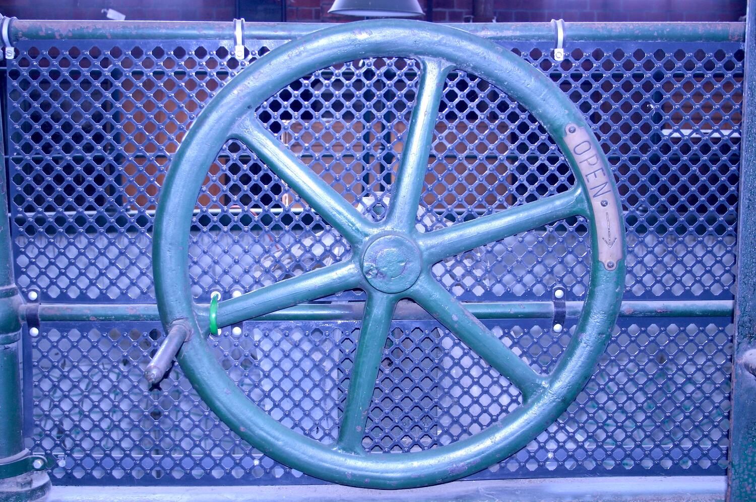 Control handwheel for operating Inlet Isolation Valve (HT 3848) of the No.1 Pumping Well, located in the South Engine Room.