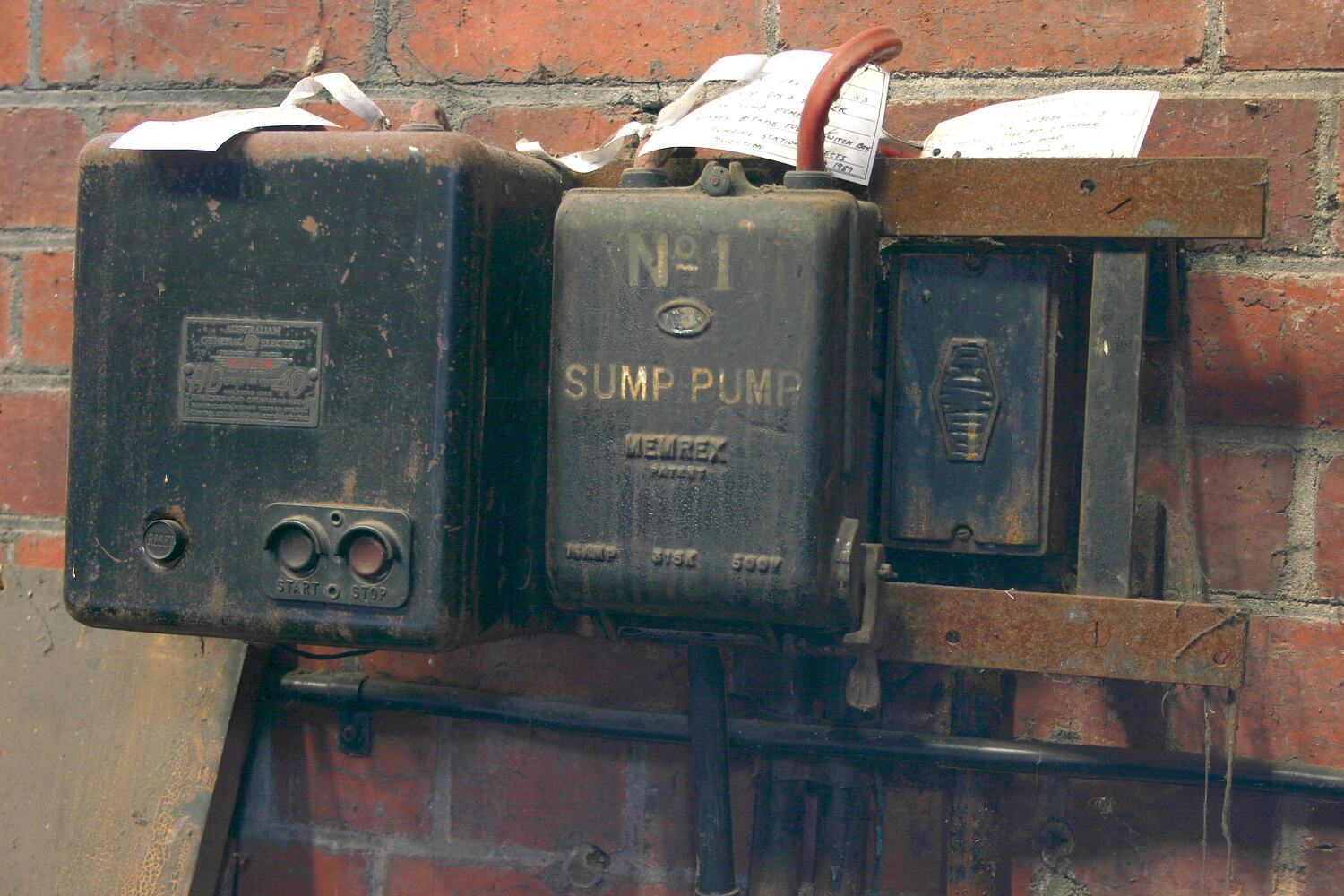 Magnetic line starter control manufactured by Australian General Electric Pty Ltd. This control was used for starting the electric sump pump installed in the No. 1 pumping well. The original electric pump starting equipment for the Nos 1 & 2 pumping wells was replaced in 1954.
