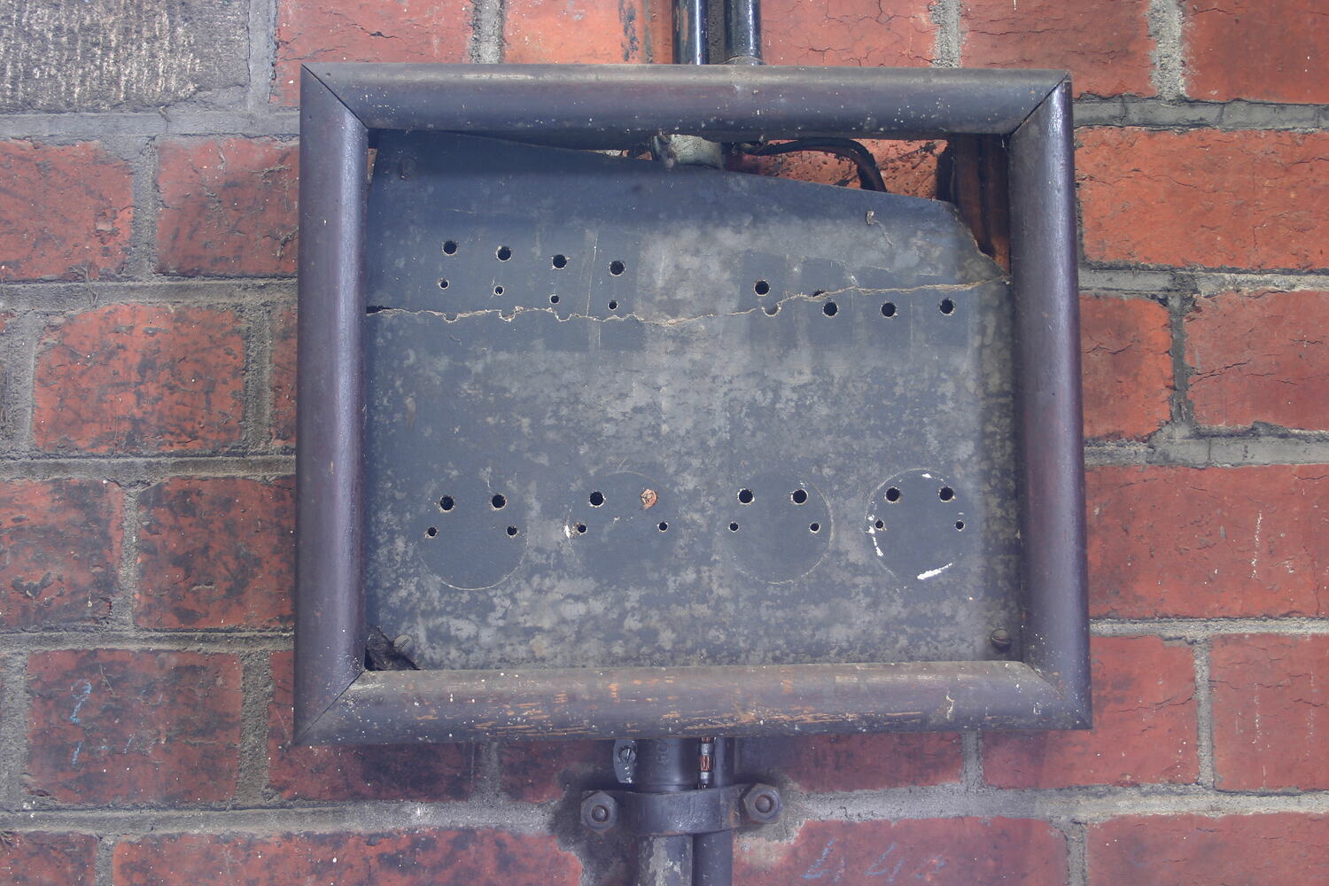 Wall-mounted fuse and switchboard for lighting located in the South Engine Room. Stripped of fuses and switches.