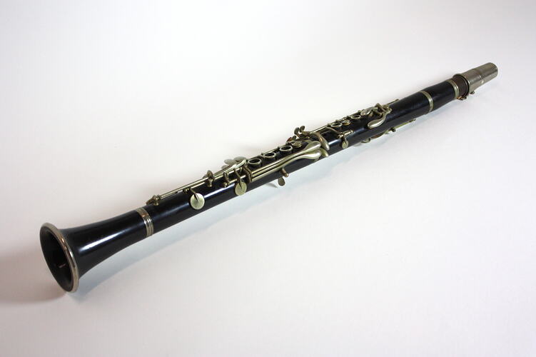The clarinet is inscribed 'Romeo Orsi', the name of an Italian clarinet player and, from 1880, a musical instrument maker with Paolo Maino.