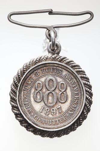 Obverse: 888/1897/8 HOURS ANNIVERSARY COMMITTEE MELBOURNE Reverse : S. Barker.