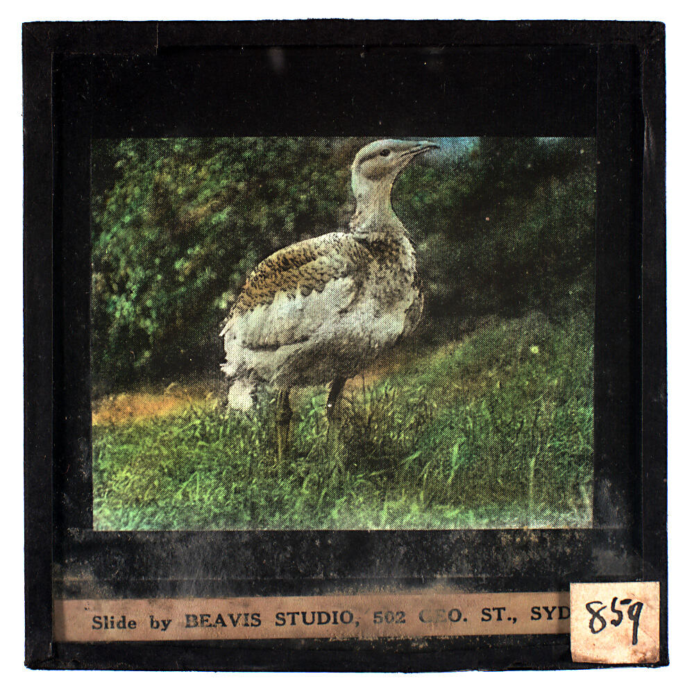 Lantern slide of bird. Manufactured by Beavis Studio, Sydney, New South Wales, circa 1940s.