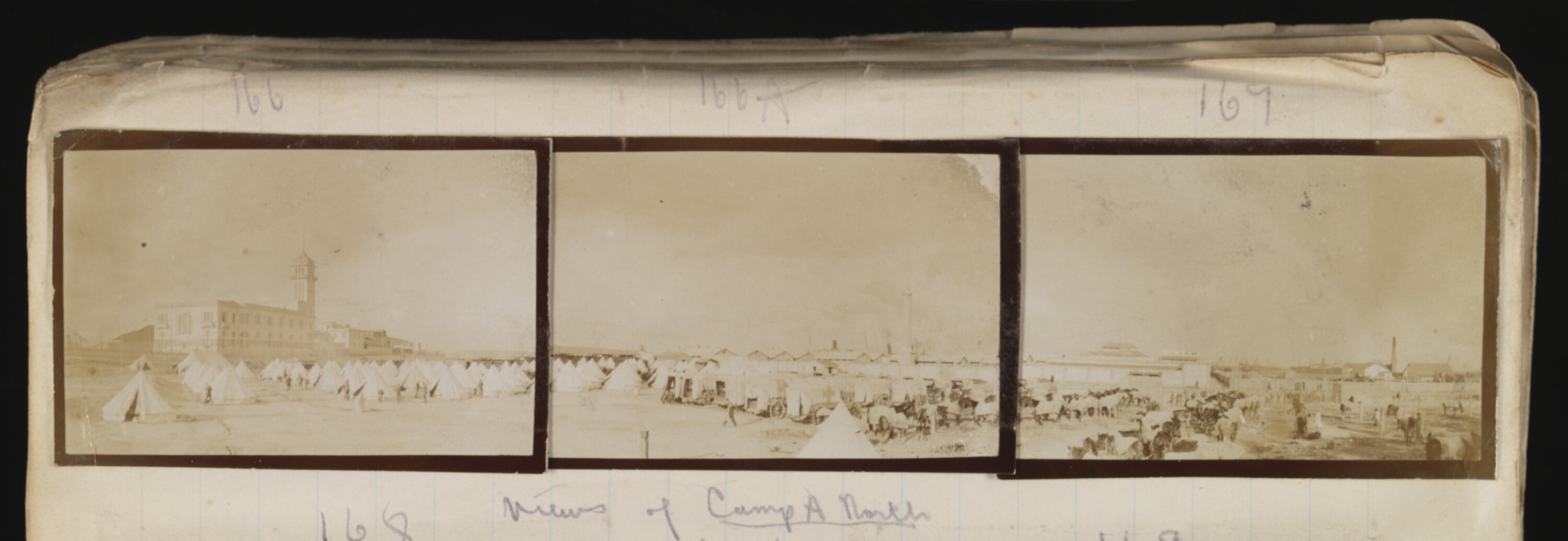 Triptych photograph of Camp A, North Gabarri, during World War I.