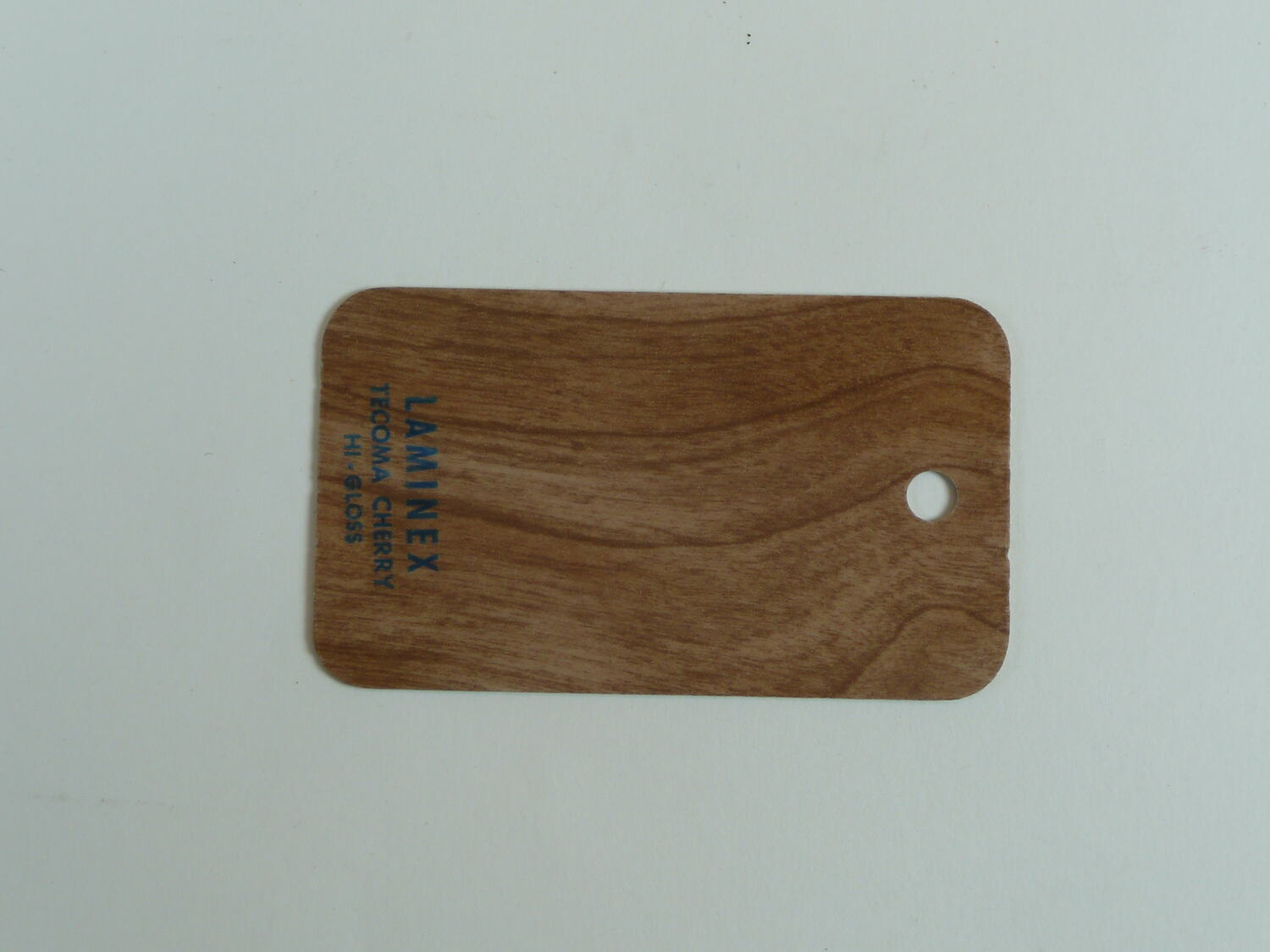 Printed on front with blue ink: 'LAMINEX / TECOMA CHERRY / HI-GLOSS' Printed on reverse with blue ink: 'LAMINEX / QUEENSLAND SILVER ASH / HI-GLOSS'