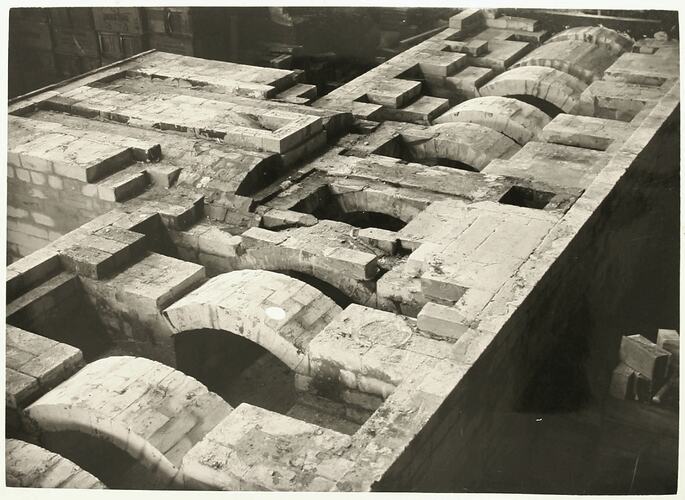 Extension of the McKay Massey Harris welding plant, Sunshine, December 1941. Top section of brick archways viewed from above.