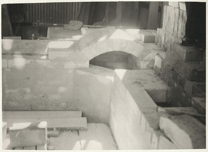 Extension of the McKay Massey Harris welding plant, Sunshine, December 1941. Partially built brick construction with the top section of a brick arch visible.