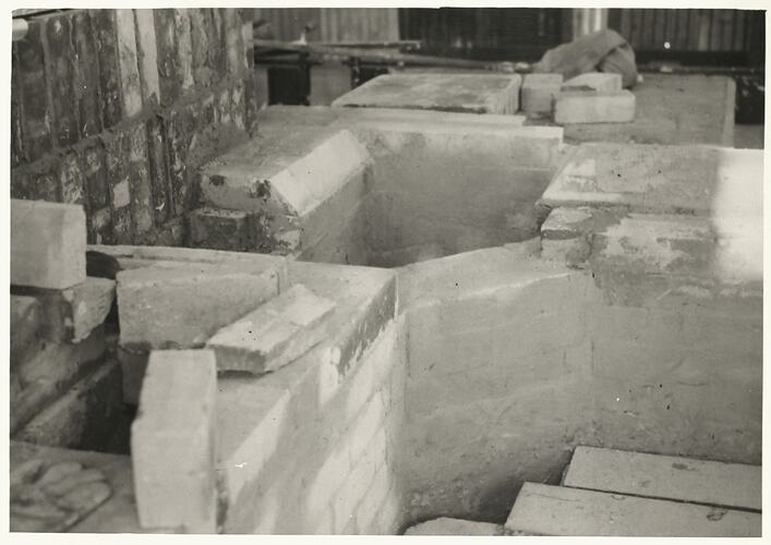 Extension of the McKay Massey Harris welding plant, Sunshine, December 1941. Partially constructed brick section with angled walls.