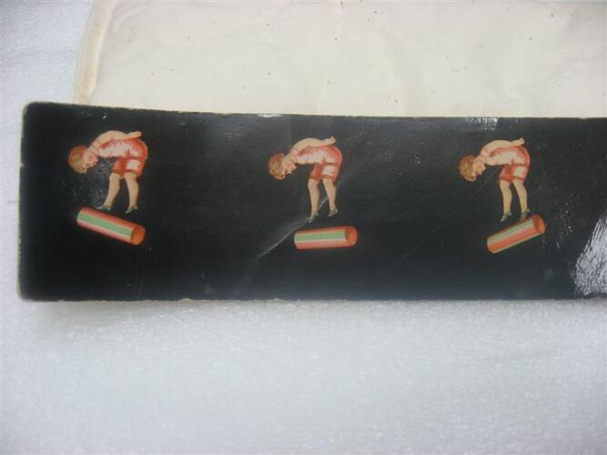 This praxinoscope strip is part of the Francis Collection of pre-cinematic apparatus and ephemera, acquired by the Australian and Victorian Governments in 1975. David Francis was the curator of the National Film and Sound Archive of the British Film Institute as well as being a co-founder of the Museum of the Moving Image in London, which was operational between 1988 and 1999.