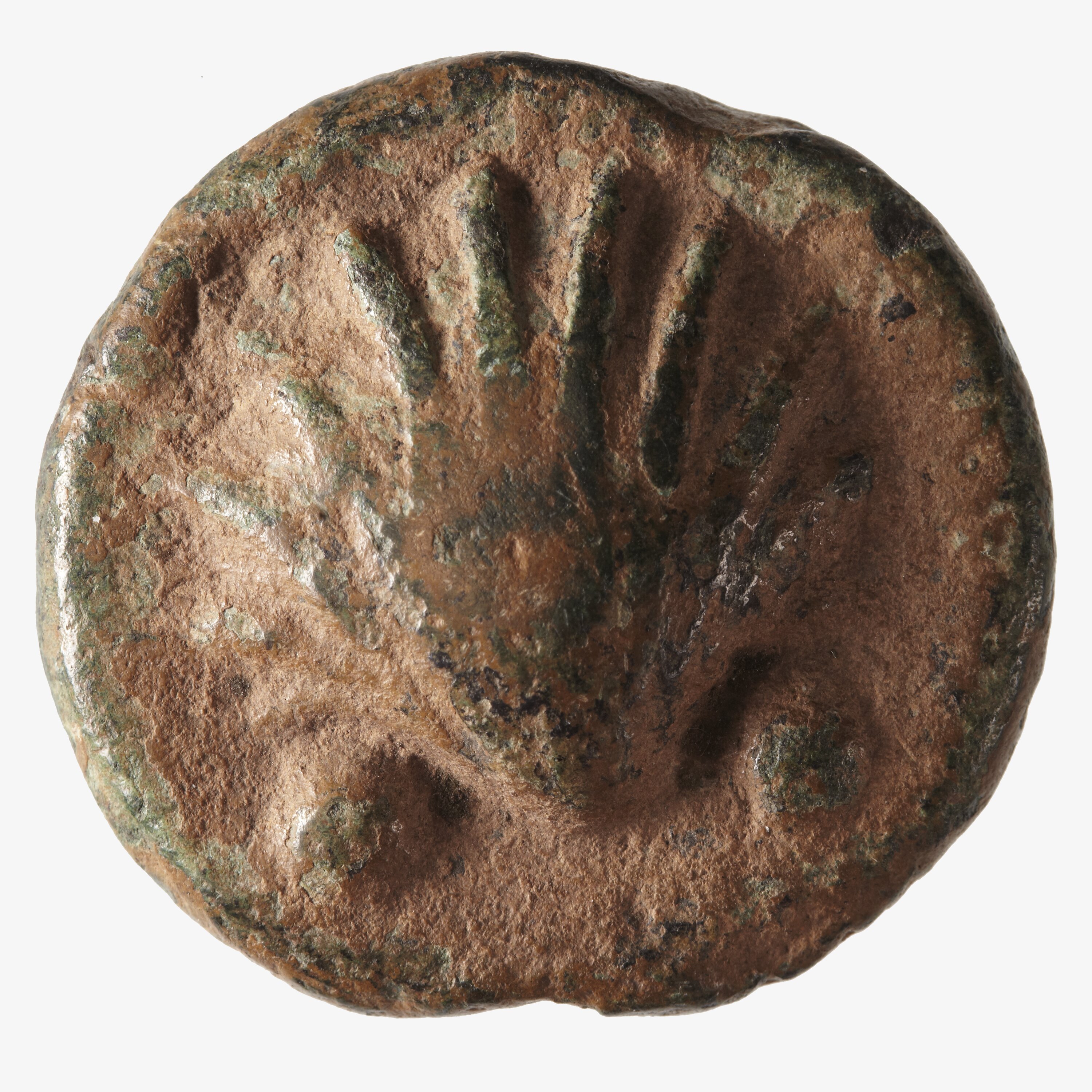 The earliest copper coins of the denomination 'as' weighed one Roman pound (about 329 g.) and were produced by casting from about 280 BC. There were 12 Roman uncia in a Roman pound and 12 uncia coins to the as. This coin, a sextans or sixth of an as was worth 2 uncia, hence the two dots for the denomination on each side. Cast coins were not produced with exact weights but the average weight of a large sample would have been close to the desired standard.