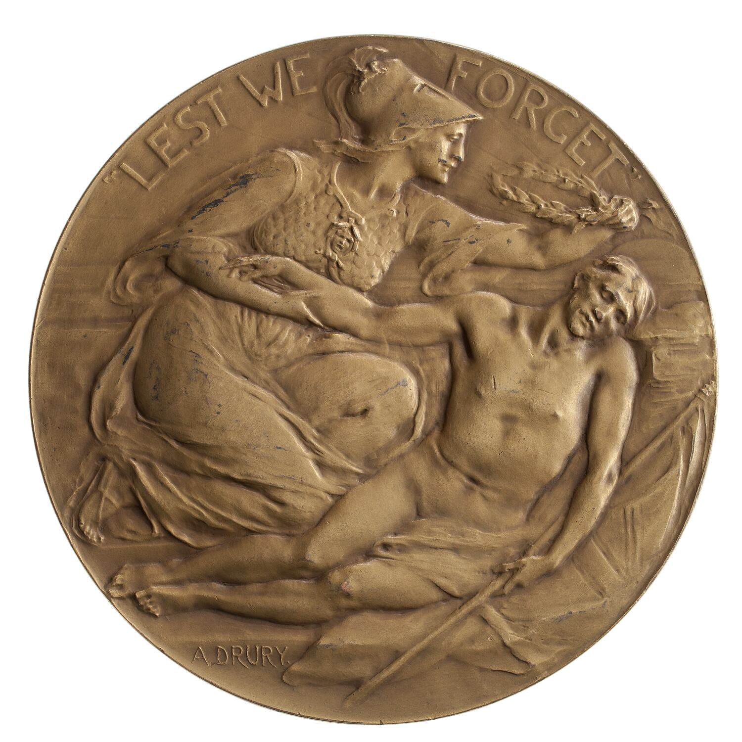 Obverse inscription: "LEST WE FORGET / A. DURY" (Artist's name).
