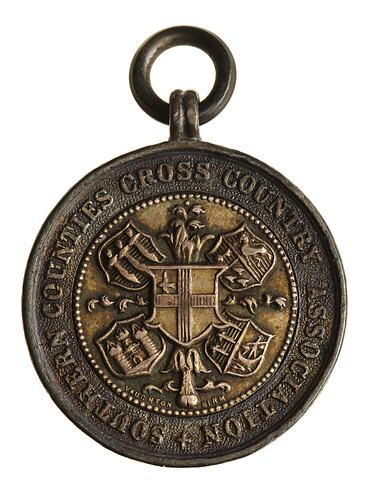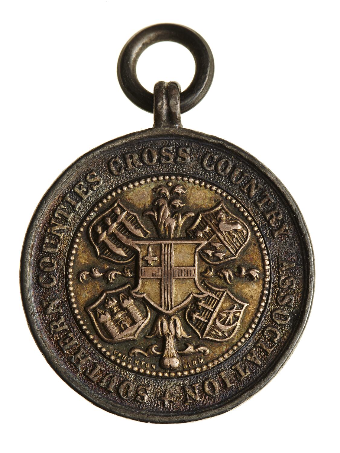 At the centre the shield of the City of London with four other shields around; around on silver, SOUTHERN COUNTIES CROSS COUNTRY ASSOCIATION.