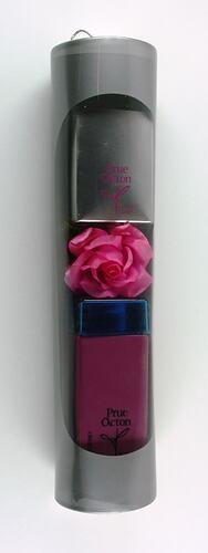 These items add to the Museum's Prue Acton collection, supplementing other items from her cosmetics range. There are no other examples of her perfumes or gift sets in the collection.