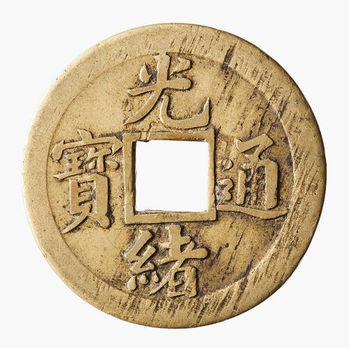 Four Chinese characters around the hole - Khuang-hsu t'ung pao.