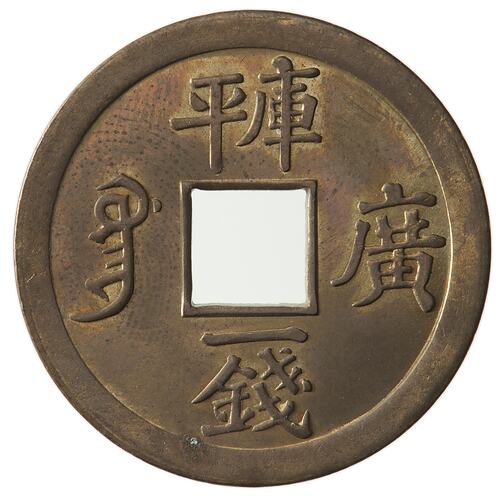 Four characters in Chinese and Manchu, Ku-p'ing yi ch'ien kuang (One cash according to the Treasury scale, Kuangtung)