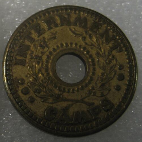 Obverse: INTERNMENT ... CAMPS ... Reverse : ONE ... PENNY