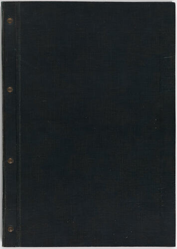 This large green bound folio contains technical mathematical and geometric colour pencil sketches. This folio of work by Karl Muffler, is inscribed 'Tatura' 29th March 1943 to 20th April 1944. The drawings deal mainly with perspective in numerous geometric designs and demonstrate the kind of activities undertaken by interns (often instructed by other interns) to keep themselves occupied. Karl Muffler was interned as a German enemy alien at Tatura Internment Camp, from 1939 to 1944.