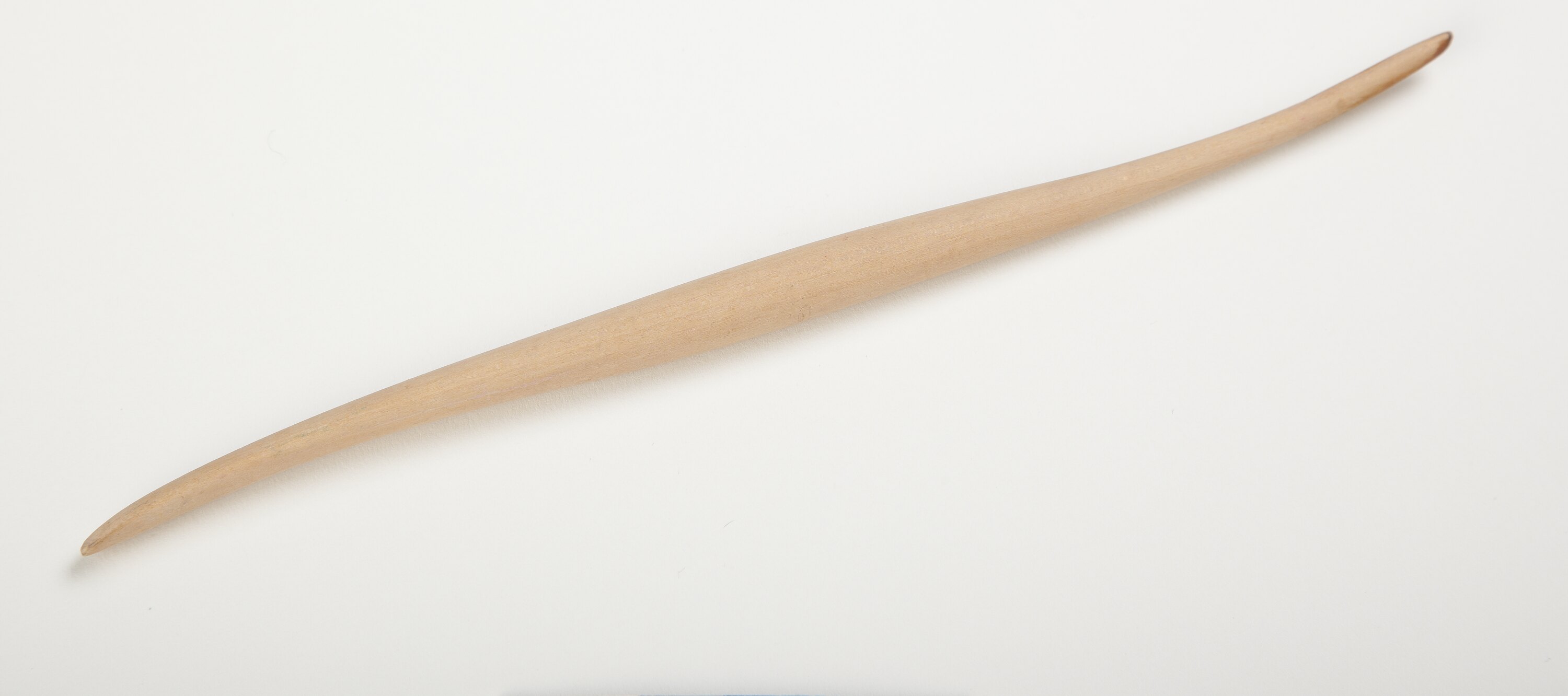 One of six wooden tools used for hand modelling marzipan-style flowers. The tools belonged to German pastry chef Karl Muffler and were used by him during his career as a pastry chef and confectioner in Melbourne from the 1930s and during teaching cake decorating at William Angliss Food Trades School during the 1940s.