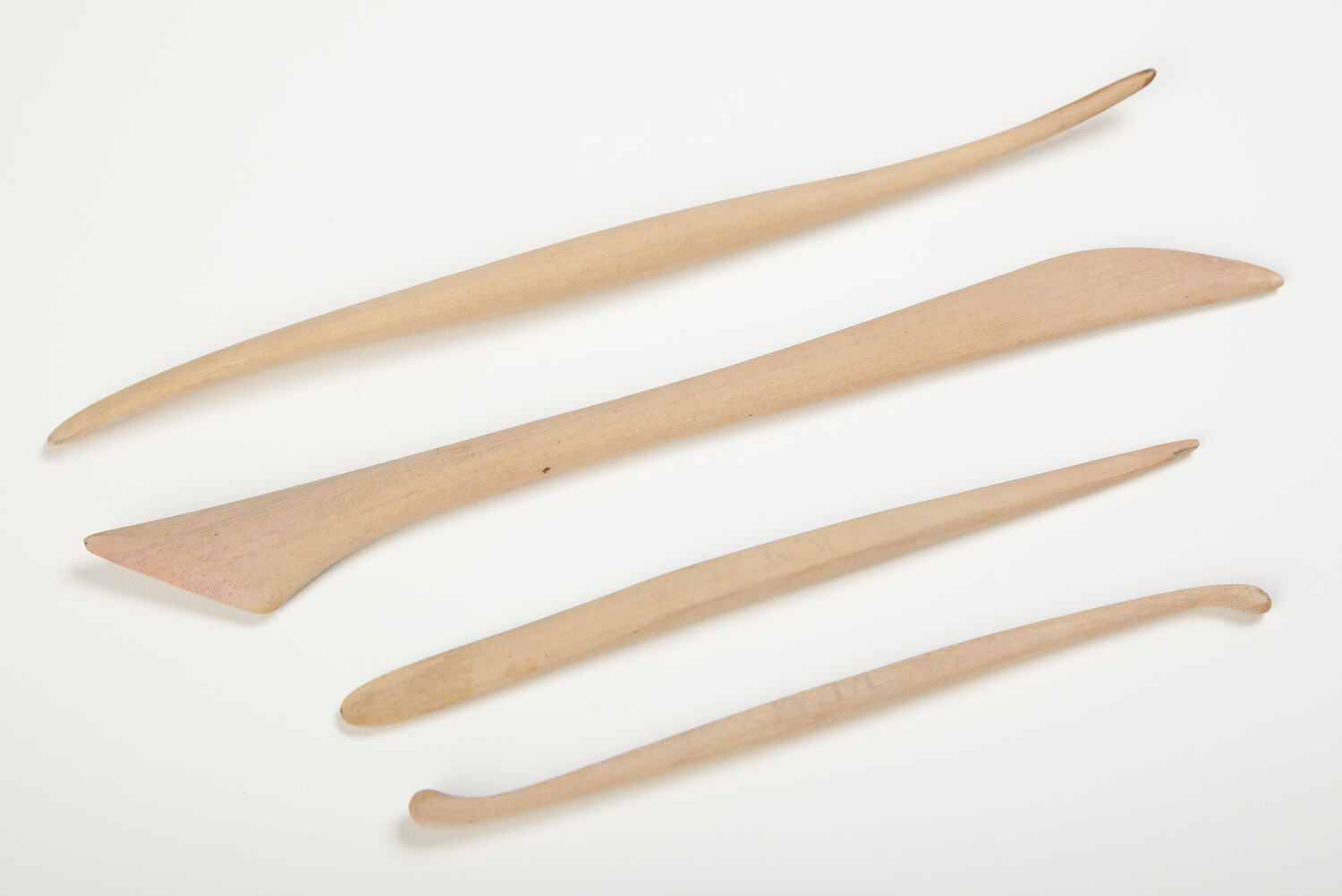 One of six wooden modelling tools or varying shapes and sizes. Used for hand modelling marzipan-style flowers.