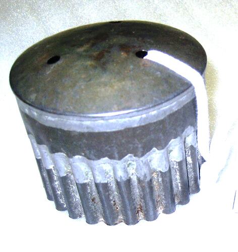 This metal scone cutter was used for cutting out scone dough. It belonged to German pastry chef Karl Muffler and was used by him during his career as a pastry chef and confectioner in Melbourne from the 1930s and during teaching cake decorating at William Angliss Food Trades School during the 1940s.