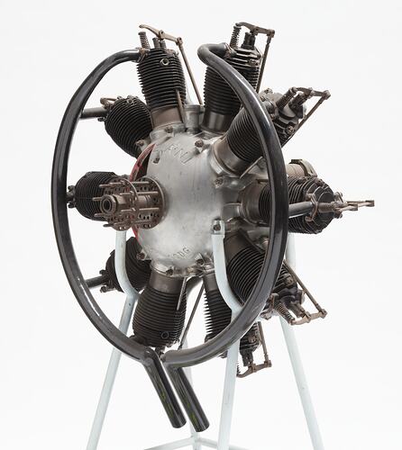 This engine was sourced from the Aircraft Disposal Company in London by an agent for the Museum and shipped to Melbourne in 1922. The engine was sectioned by staff in the Museum workshop for the Air Transport display in McArthur Hall that was opened in March 1970 as part of the Museum's centenary celebrations.