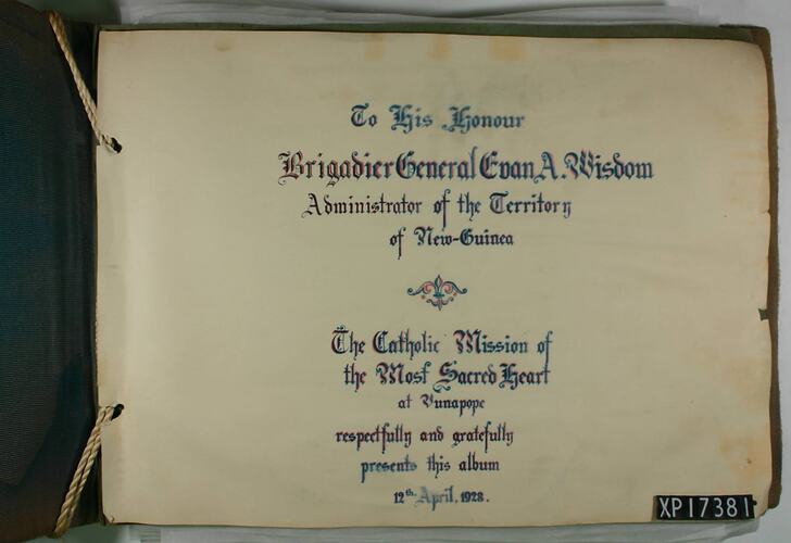 The Catholic Mission of The Most Sacred Heart at Vunapope respectfully and gratefully presents this album 12th April 1928'