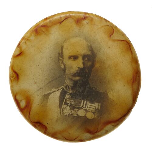 Patriotic badge featuring unidentified Victoria Cross recipient, Australia, circa 1917.