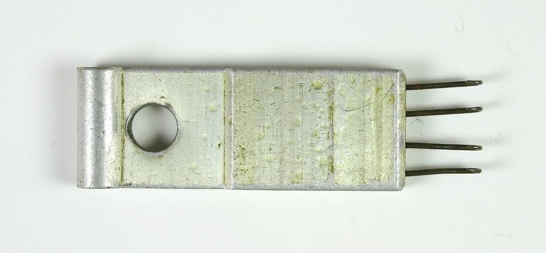 Transfer Tool used with 'Dubied' knitting machine, used by Edda Azzola from 1950 to 2000 for making commercial and personal clothing. This 'Dubied' knitting machine was brought to Australia from Italy in the 1950s by an Italian migrant woman and then sold to the Edda, who had migrated to Melbourne from Italy in 1955. Edda used it to supply a Collingwood knitting mill with finely finished clothes for sale to Melbourne department stores, until the factory closed in 1974. It was then used to make family clothes.