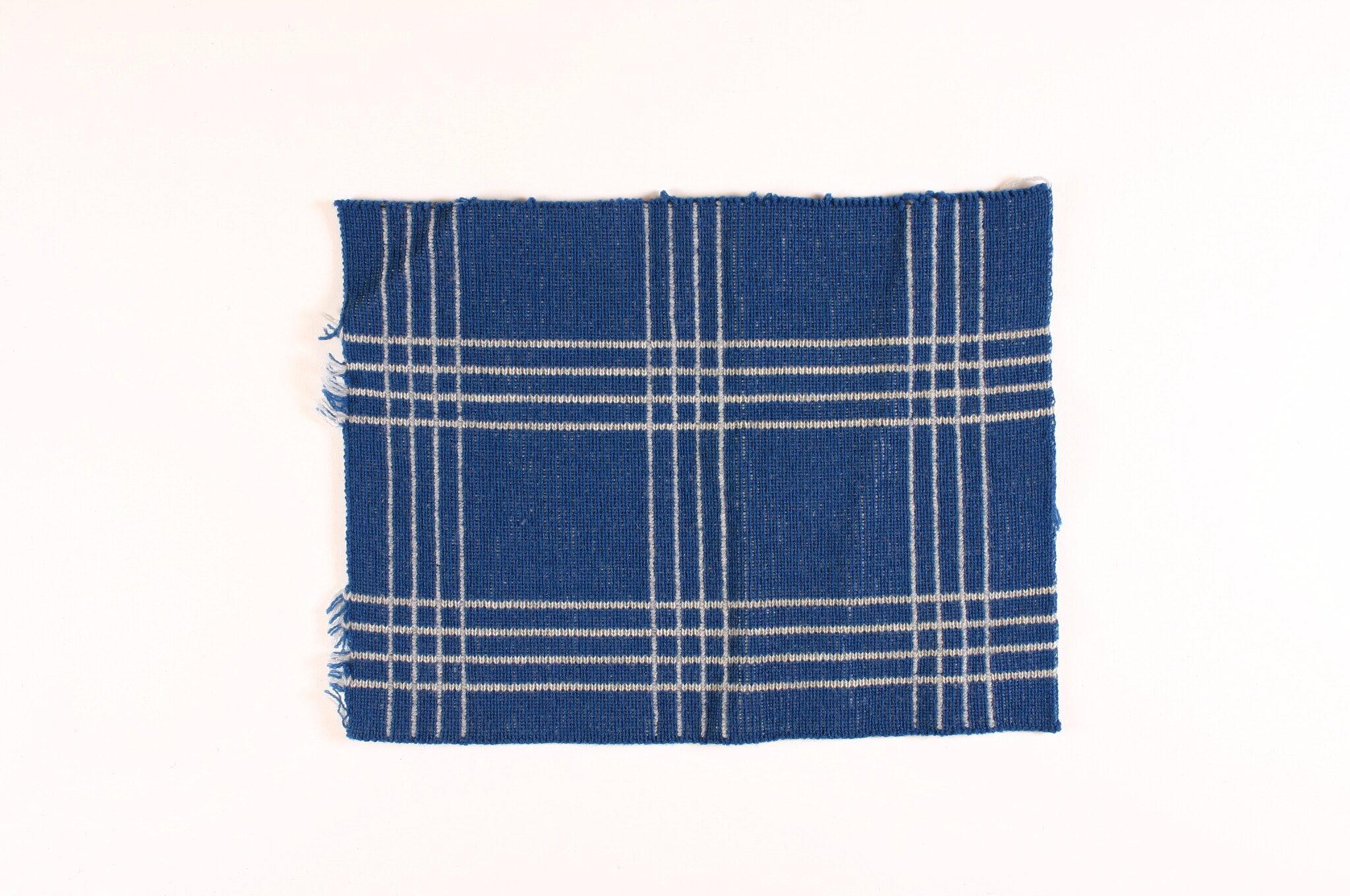 Blue Knitting sample with grey stripes, one of many made by Edda Azzola to test designs prior to making a garment. Edda Azzola, nee Pugnetti, was born in 1927 in Moggio Udinese in the Friuli region, northern Italy and the family moved to nearby Pontebba four years later. In Italy Edda and her two sisters worked as knitting machinists from the family home. Edda married Angelo Azzola, a young man from her village and they migrated to Australia in the mid 1950s.