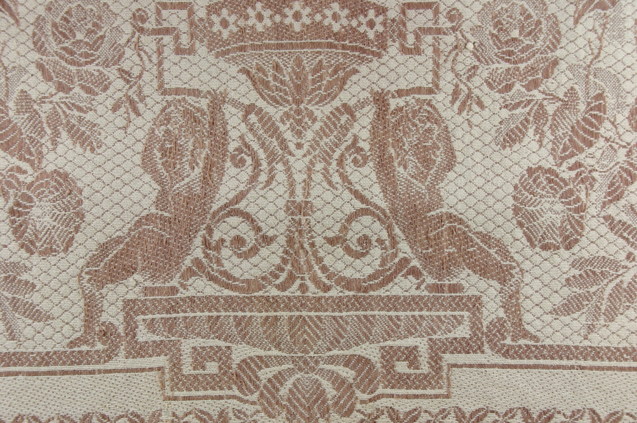 Bedspread purchased in Italy for Edda Azzola's glory box by her mother, and hand embroidered by Edda. Edda Azzola, nee Pugnetti, was born in 1927 in Moggio Udinese in the Friuli region, northern Italy and the family moved to nearby Pontebba four years later. After their early schooling, Edda and her two sisters worked as knitting machinists from the family home. The income they made was saved by their mother who used the money to purchase items for their dowries. Edda's dowry included 6 pairs of double linen sheets which she embroidered, 12 towels and other items.