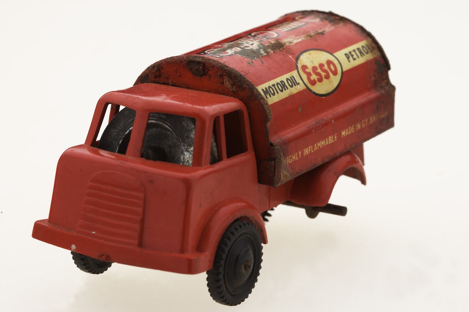 Toy metal red Esso petrol tanker used and owned by Bill Boyd in the 1950s.