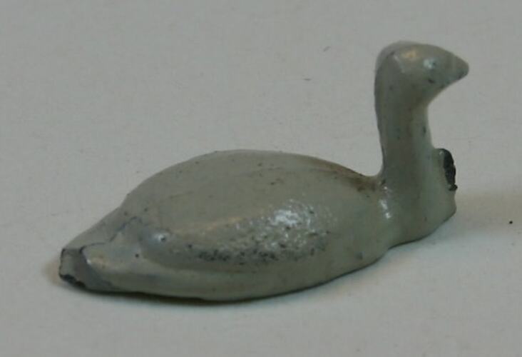 Toy metal swan painted white.