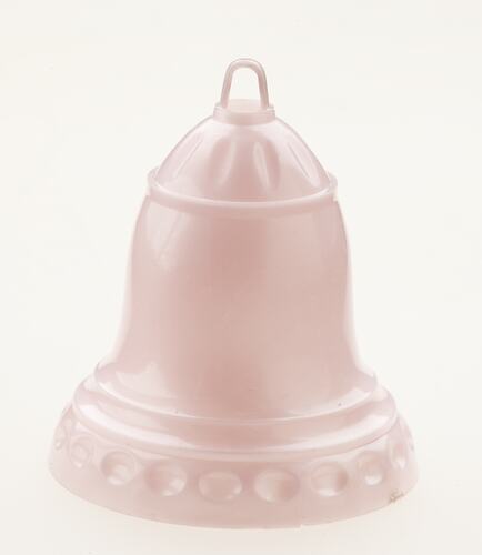 Christmas decoration in the shape of a pink plastic bell.