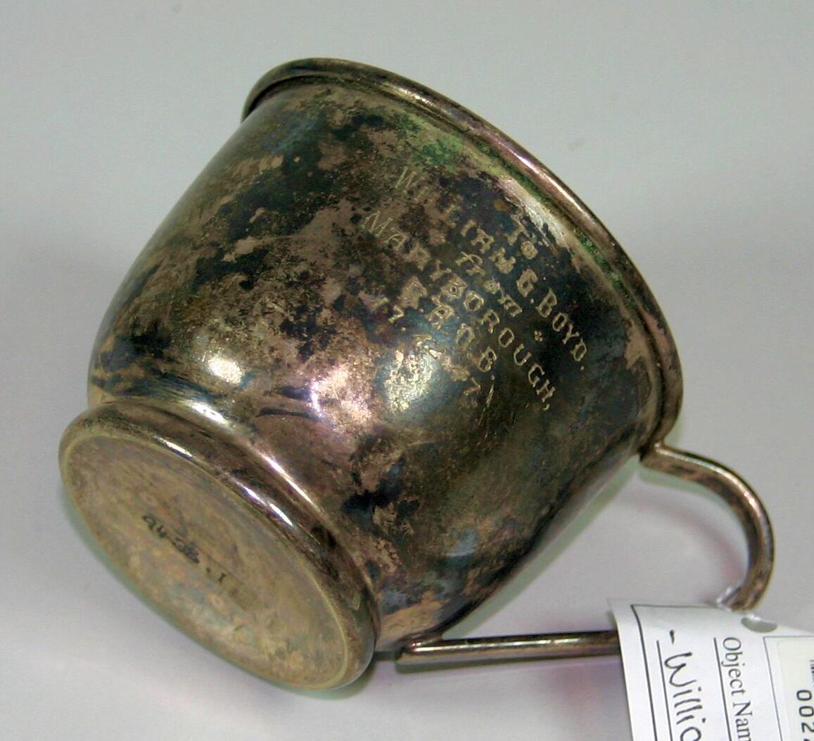 Engraved on side: To/WILLIAM G. BOYD./from/MARYBOROUGH,/R.A.O.B./17.12.47.