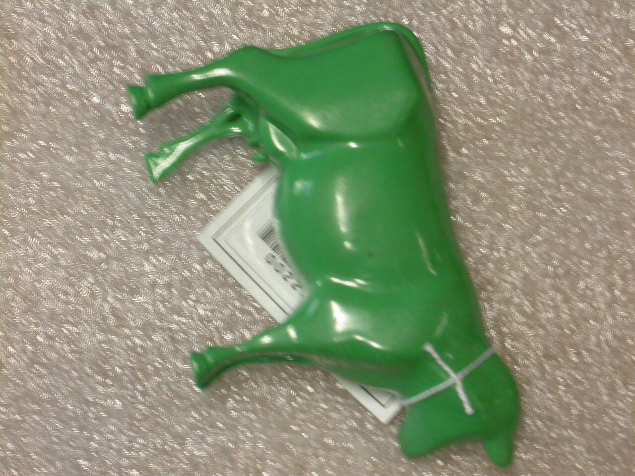 Green plastic toy cow used and owned by Bill Boyd in the 1950s.