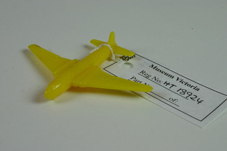 Yellow plastic toy aeroplane used and owned by Bill Boyd in the 1950s.