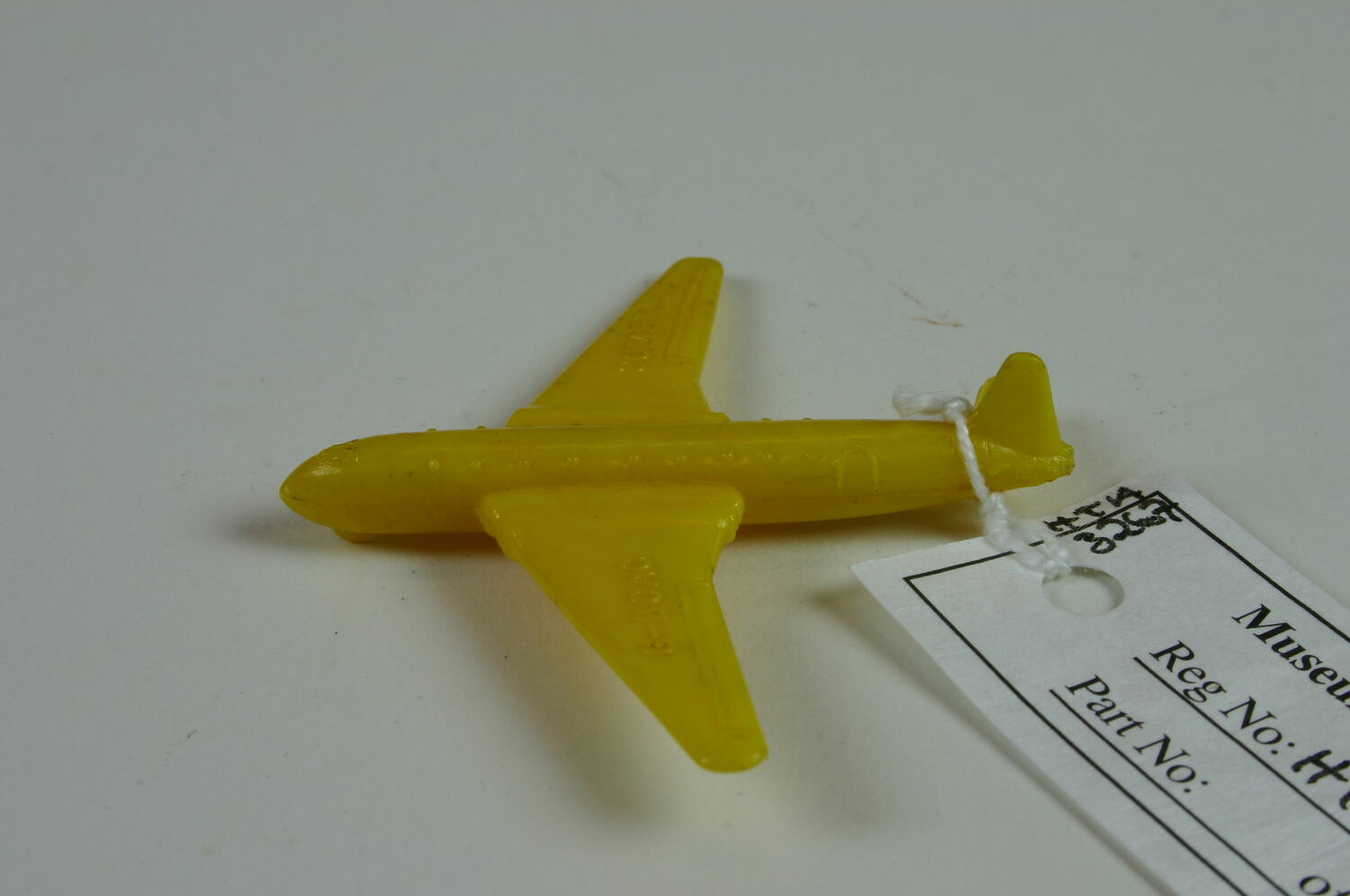 Yellow plastic toy aeroplane used and owned by Bill Boyd in the 1950s.