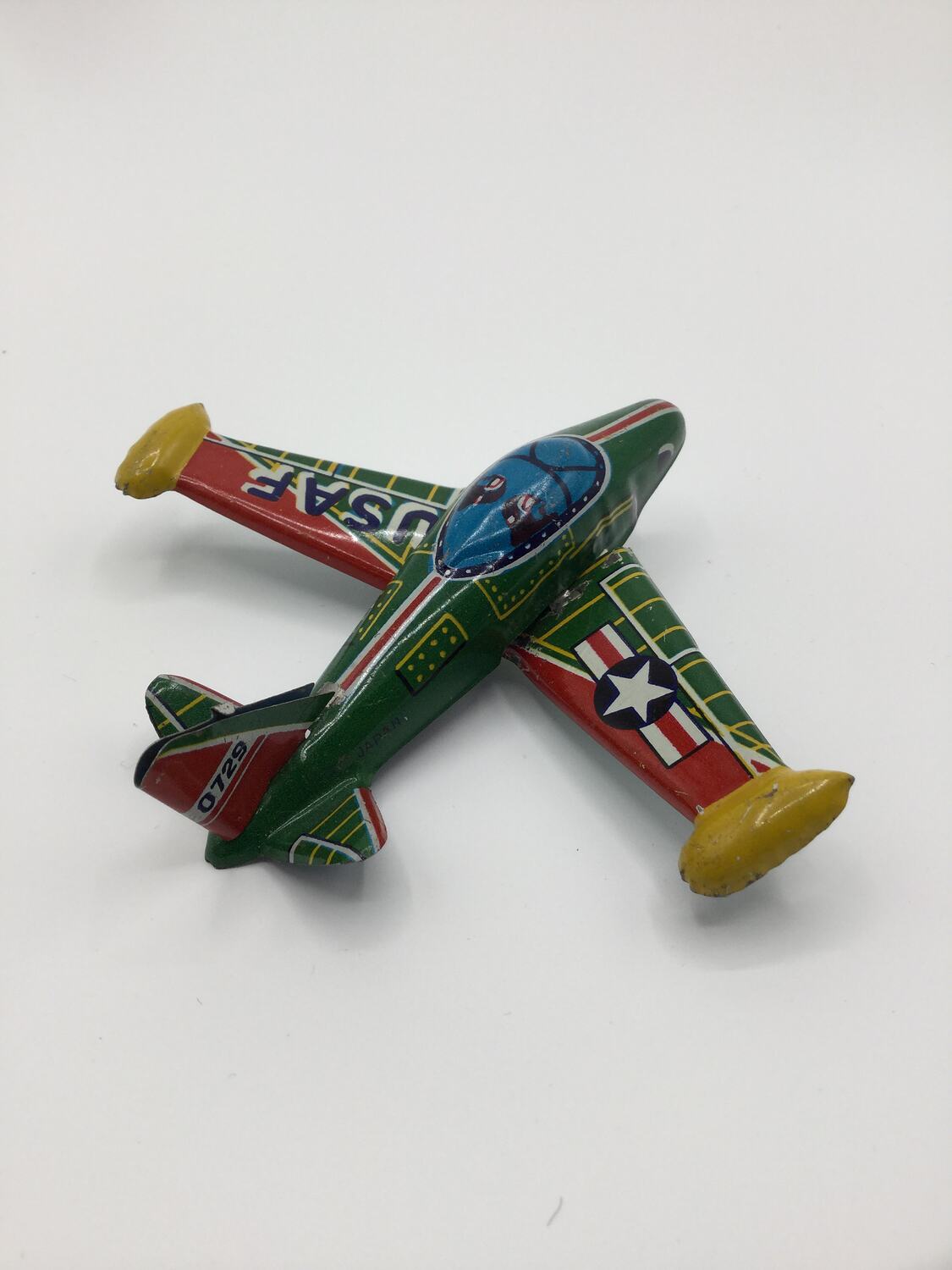 Small press metal toy aeroplane printed 'USAF'. Used and owned by Bill Boyd in the 1950s.