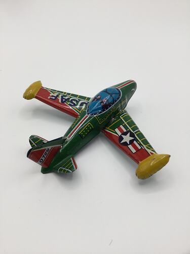 Printed on wing: 'USAF'. Printed on tail: '0729'. Museum number hand-written on underside [probably ex-WA Museum or Museum of Childhood] '94.102a'.