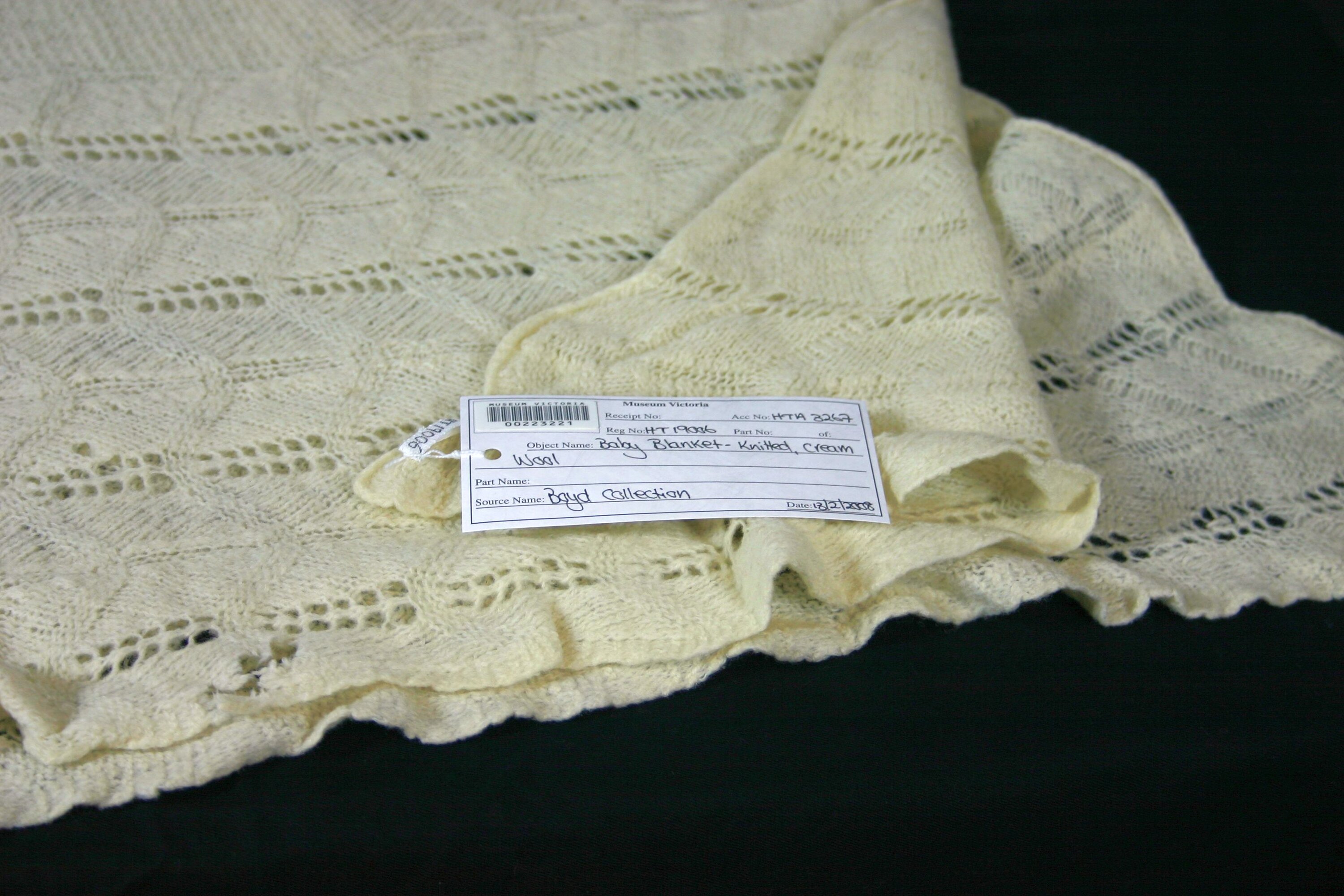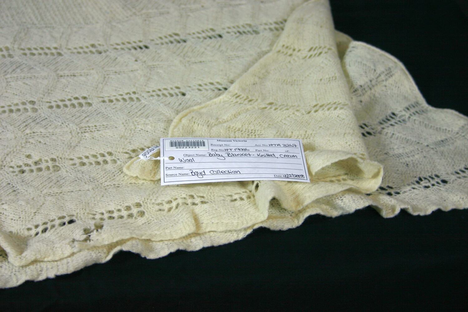 Cream wool baby blanket.