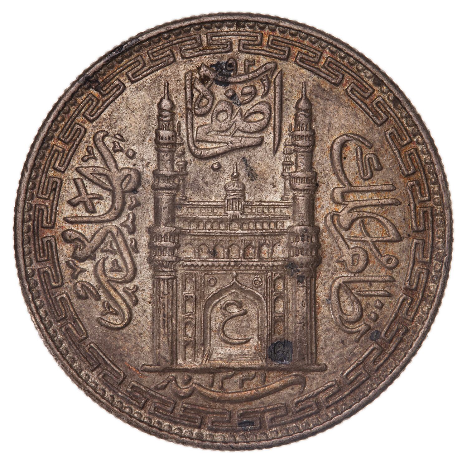 1 Rupee, Issued by Asaf Jah VII (Mir Osman Ali Khan), Hyderabad Princely State, India, 1331 AH (1912-1913 AD); Regnal Year 2