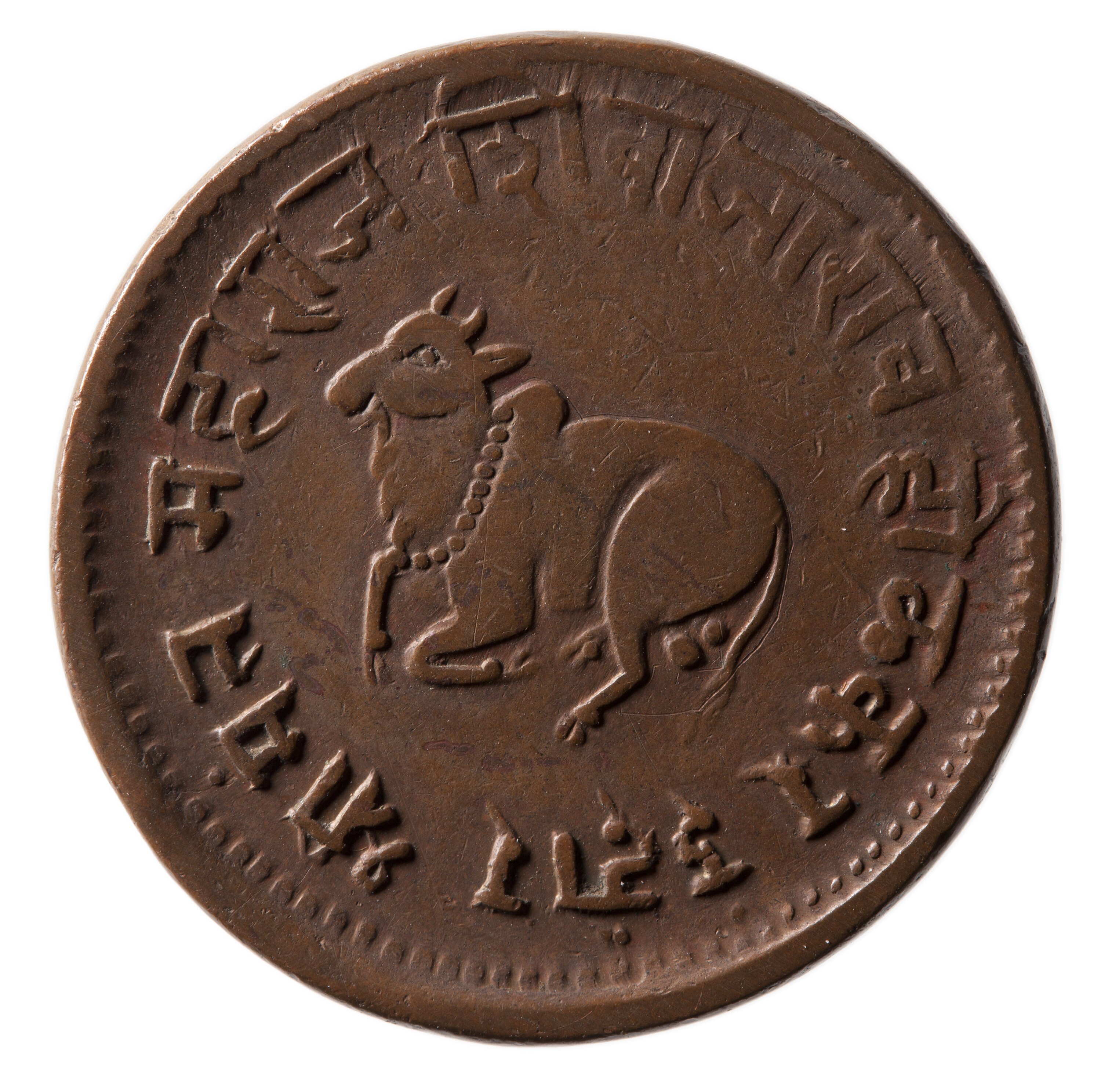 1/2 Anna coin,1944 VS (1887-1888 AD) issued by Maharaja Shivaji Rao of the Indore Princely State, India.