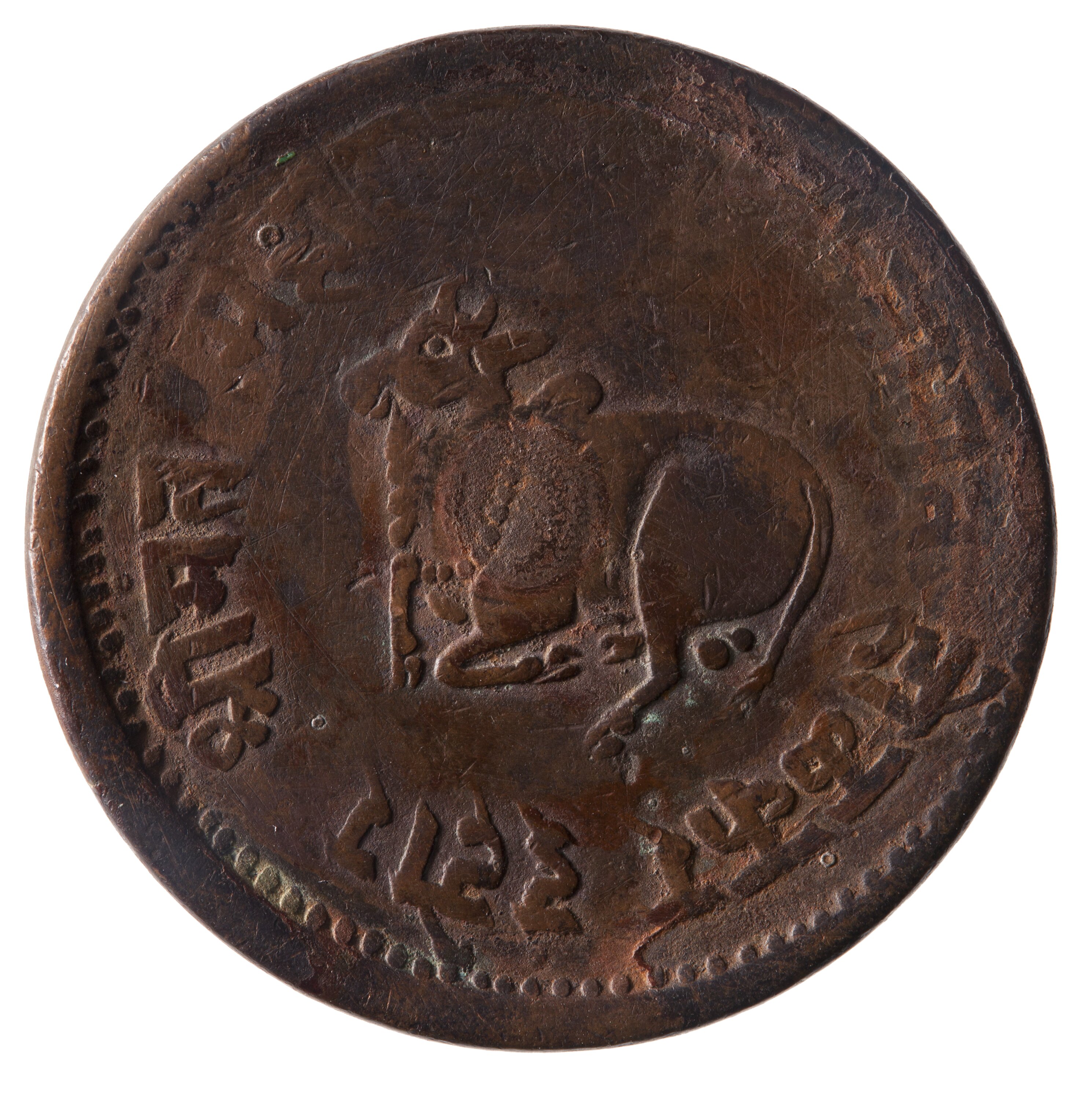 Milled copper coinage struck at the Indore mint