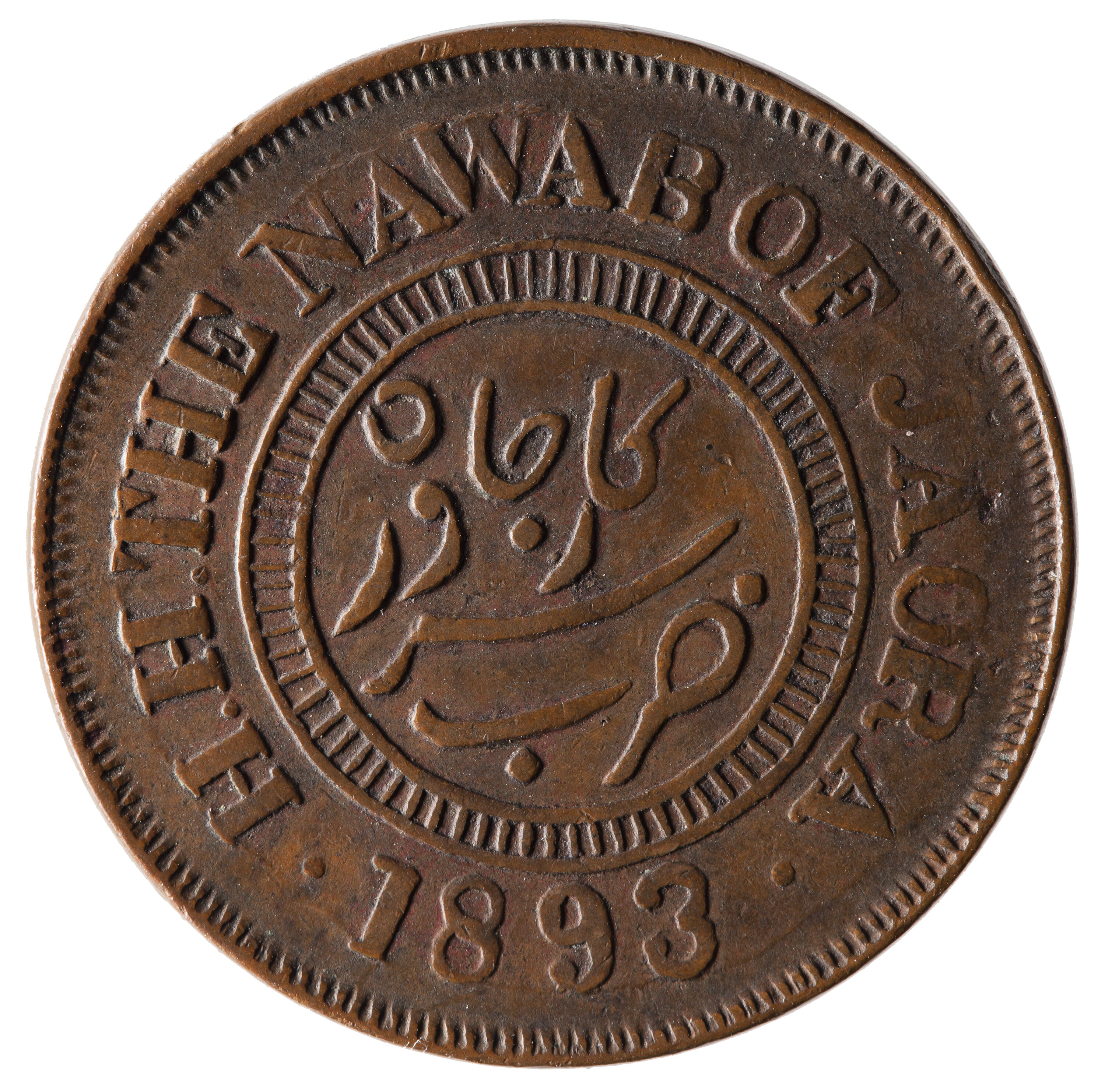 Machine struck copper coinage struck at the Jaora mint in 1893 AD
