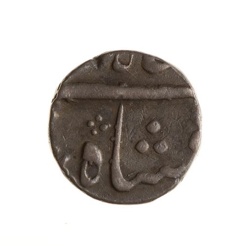 Legend in Persian script, much off flan (full legend translation: The auspicious coin of the Victorious Emperor Shah Alam)